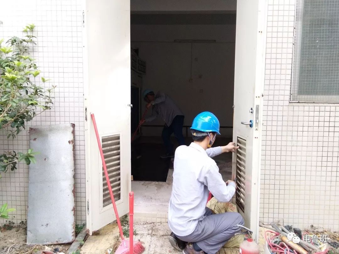 電魯班工程師對(duì)配電房?jī)?nèi)部環(huán)境進(jìn)行整理。