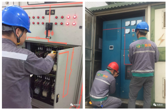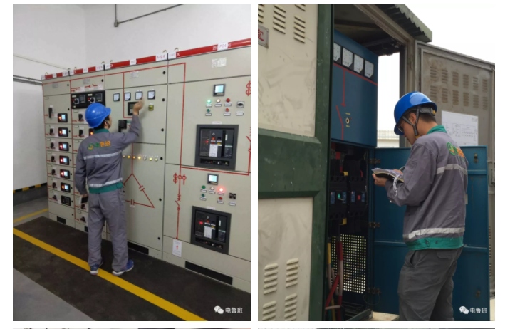 (電魯班運(yùn)維工程師對(duì)配電房進(jìn)行運(yùn)維工作現(xiàn)場(chǎng)圖)