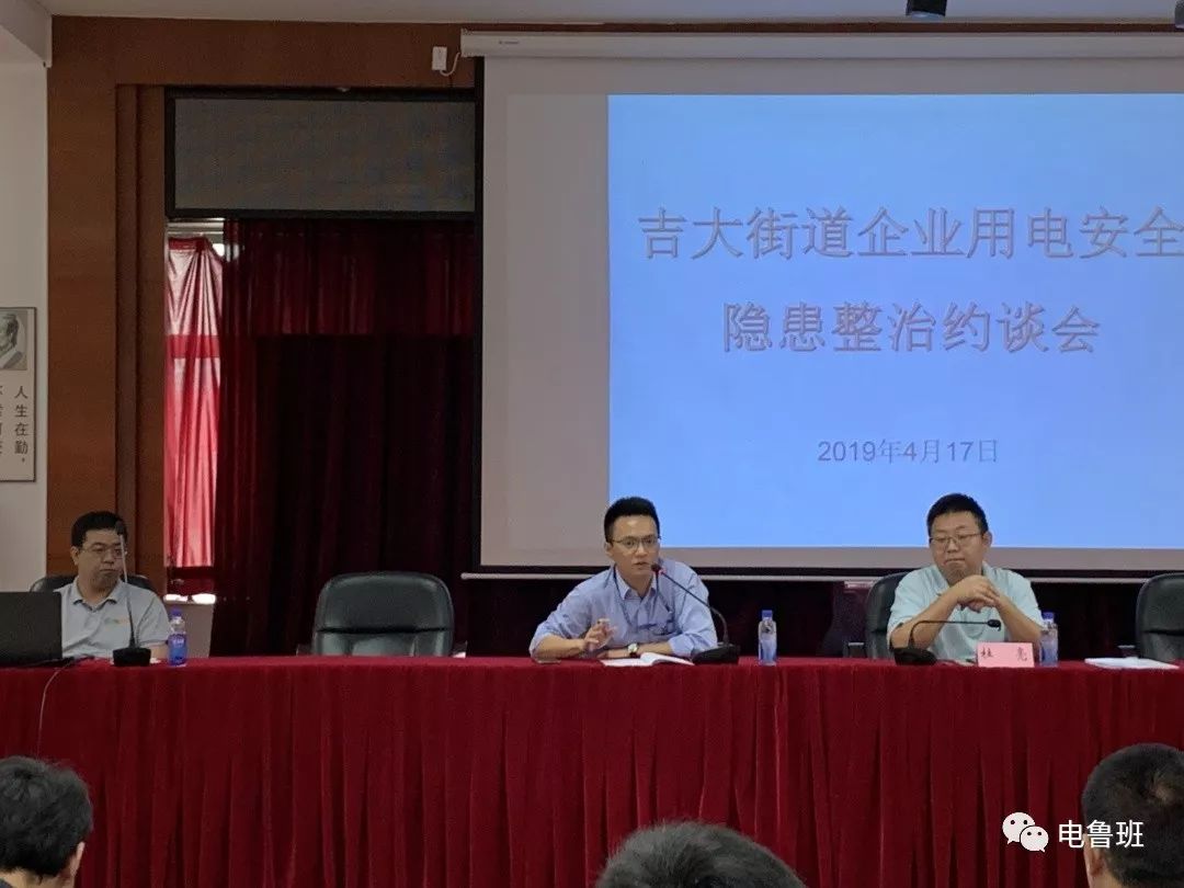 2019年4月17日,電魯班應(yīng)邀參加由吉大街道安監(jiān)站舉辦的吉大街道企業(yè)用電安全隱患整治約談會。