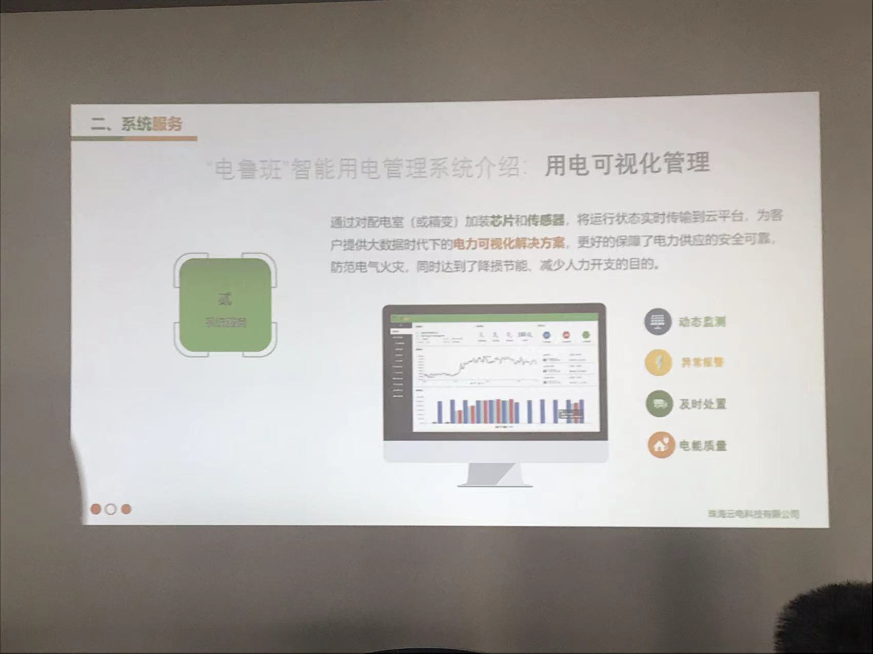 首先,兩位李總用簡(jiǎn)潔的語(yǔ)言向丁總和呂工介紹我司獨(dú)有的創(chuàng)新型電魯班綜合用電管理服務(wù)系統(tǒng)。電魯班系統(tǒng)無(wú)人值班,有人值守,能夠?qū)?shù)據(jù)可視化,對(duì)于動(dòng)態(tài)變化的數(shù)據(jù)進(jìn)行實(shí)時(shí)監(jiān)測(cè),一旦發(fā)現(xiàn)異常就會(huì)迅速報(bào)警,以保證電力火災(zāi)的黃金搶救時(shí)間,丁總對(duì)此表示高度地認(rèn)可。