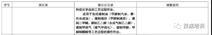增加了“新型煤化工工藝作業(yè)”、“電石生產(chǎn)工藝作業(yè)”、“偶氮化工藝作業(yè)”、“重點監(jiān)管的危險化學品倉儲作業(yè)”這4 個操作項目。
