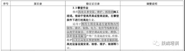 將原“高處安裝、維護、拆除作業(yè)”拆分為“懸空作業(yè)”和“攀登作業(yè)”2 個操作項目。