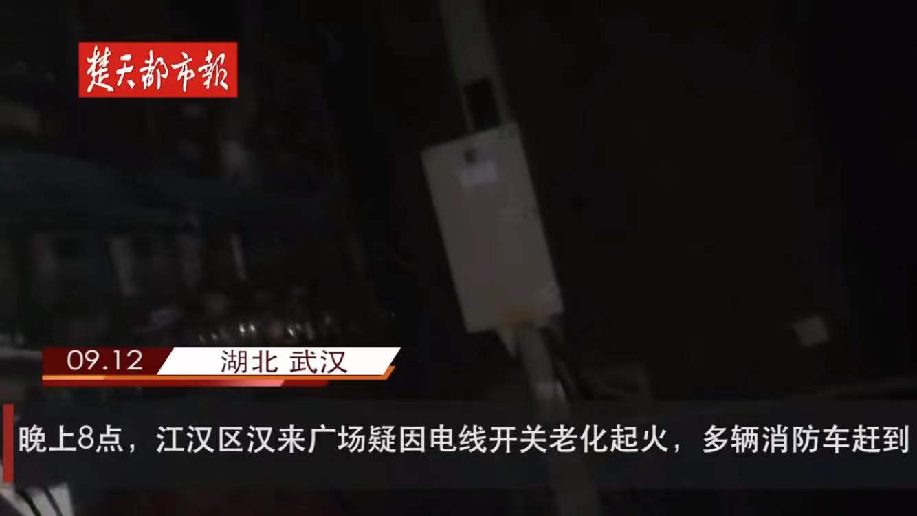 4.2021年9月12日晚8時(shí)許,位于武漢市江漢區(qū)的漢來廣場(chǎng)疑因電線開關(guān)老化起火,多輛消防車趕到。好在火勢(shì)不大,很快被撲滅,沒有造成人員傷亡