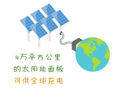 有學(xué)者算過一筆賬:按照目前全球的用電量,只要4萬平方公里的太陽能面板,就足夠供應(yīng)全球用電了。