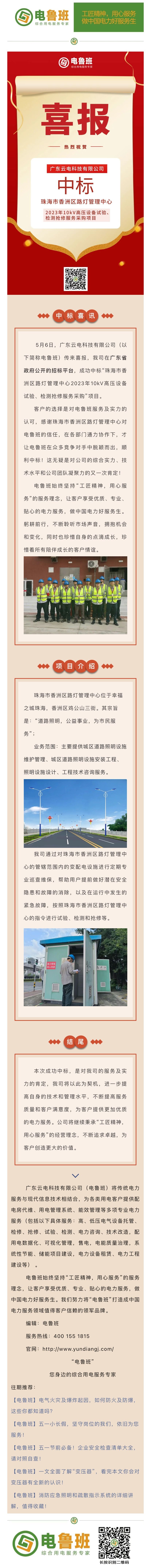 喜報!【電魯班】成功中標珠海市香洲區(qū)路燈管理中心高壓設備試驗、檢測搶修采服務采購項目!